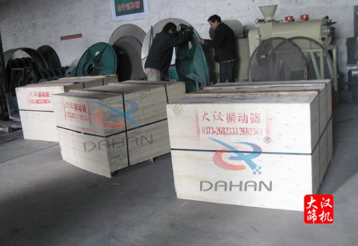 DH-1000型一層振動篩(3臺)木箱包裝,發貨現場實物圖